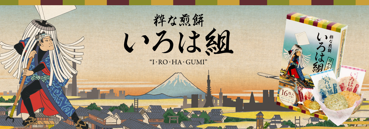 かつて江戸の街では、町火消しが人々の人気者でした。粋でイナセで喧嘩っ早いが、義理と人情にはとびきり篤い。 そんな町火消しのような、老若男女に愛される煎餅ができました。 「粋な煎餅 いろは組」をどうぞご賞味下さい。